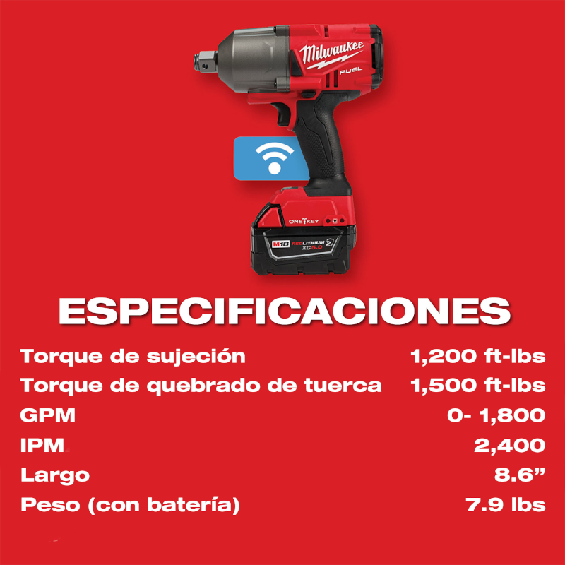 Llave de Impacto ONE-KEY M18 Brushless Milwaukee 2864-22R y Miniesmeriladora Angular M18 Milwaukee 2880-20.